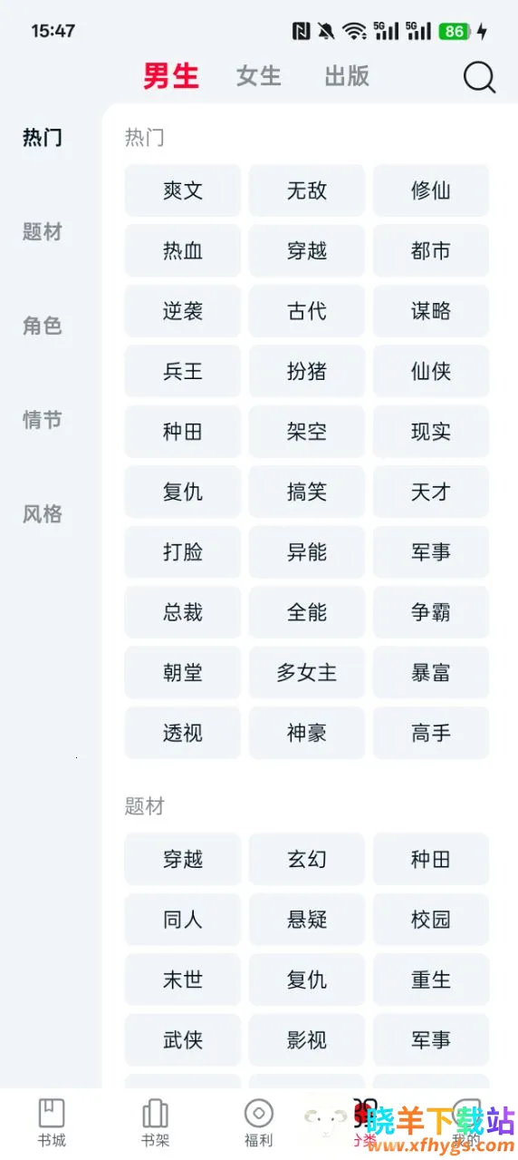 2. 分类搜索便捷高效:小说按题材分类推荐,支持通过书名一键搜索,快速定位目标内容,找书十分方便。