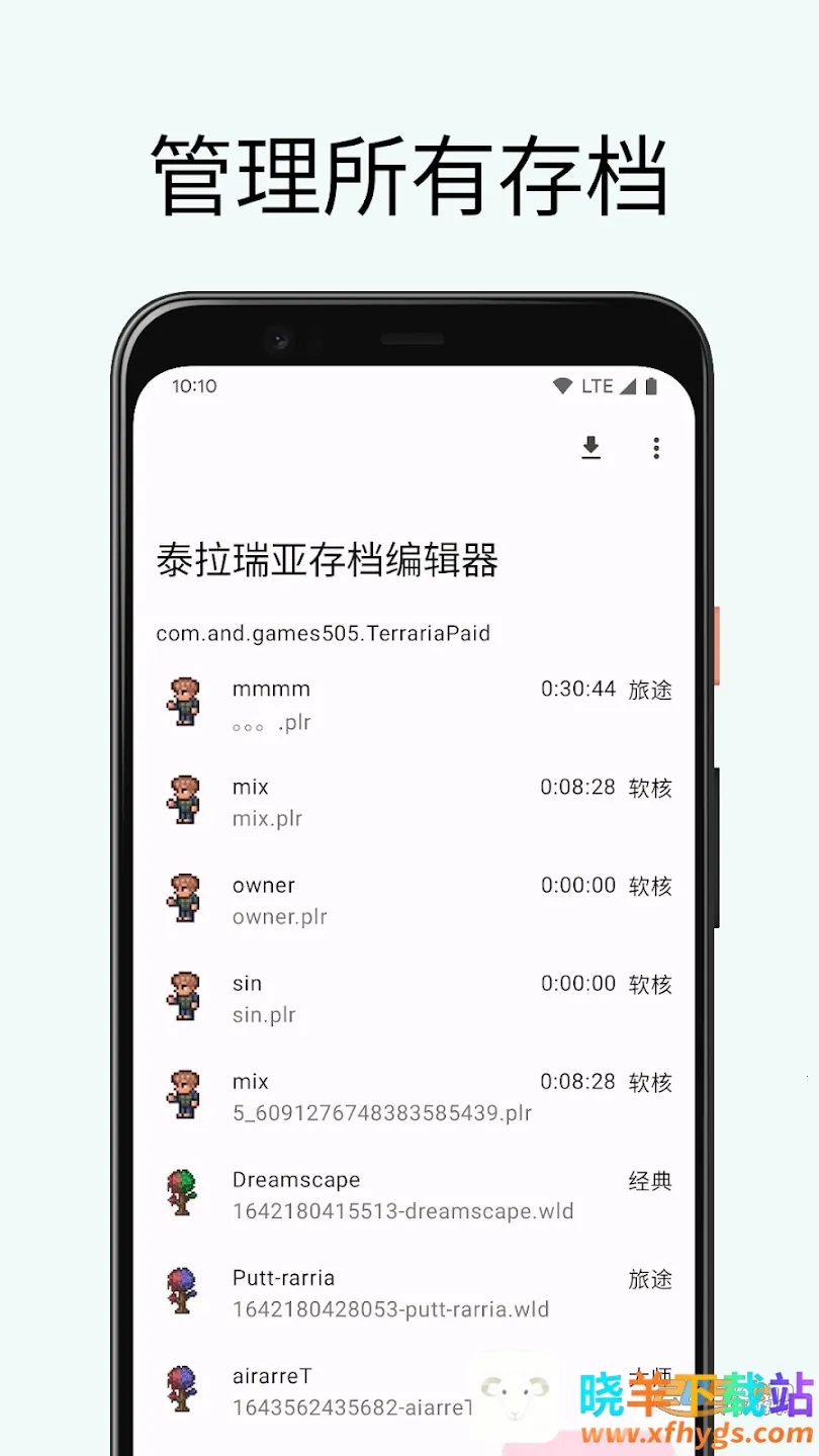 泰拉瑞亚存档编辑器是一款专为泰拉瑞亚手机版打造的存档编辑工具,适配多版本。它界面简洁中文设计,操作简单,功能丰富,可编辑存档、导入备份,还能修改角色属性等,助玩家轻松享受游戏乐趣。