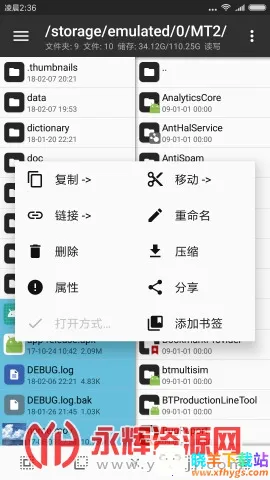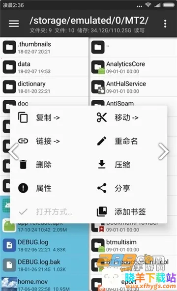 3、特色功能众多:拥有图片查看、音乐播放、字体预览、执行脚本、文本对比等功能。侧拉栏方便查看存储设备、FTP 连接、书签、后台任务和工具等。双窗口操作模式独特,两个目录同时显示,结合前进后退同步等功能,操作高效。