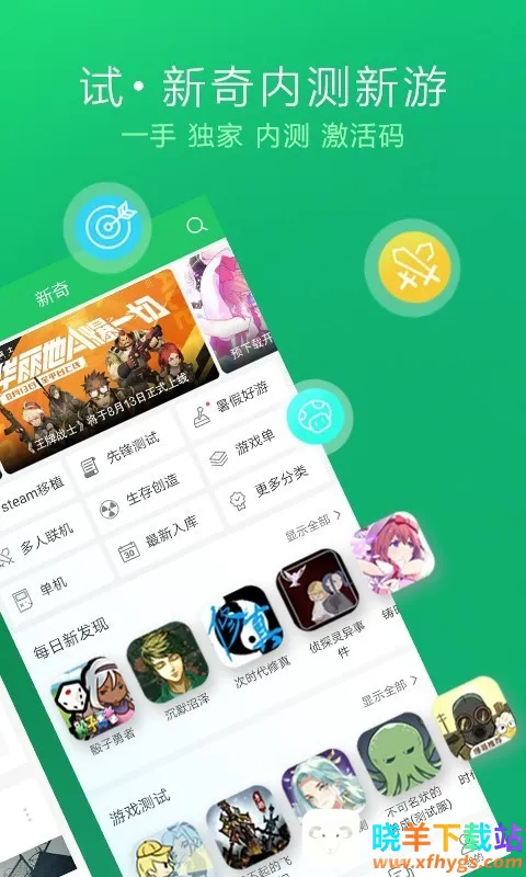 1. 新鲜游戏抢先玩:能第一时间体验新奇内测新游,掌握一手独家内测激活码,感受新鲜好游戏。
