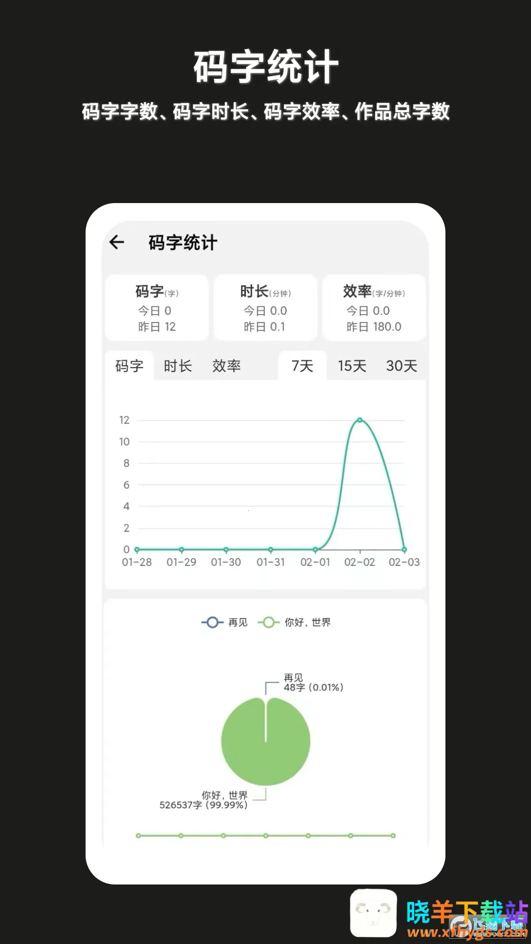 闭关写作是一款专为小说创作者打造的工具。它**能自动保存码字内容至云端,防止丢失**,方便随时查看编辑。其简洁设计为创作提供更多可能,提高写作效率。用户可依个人喜好设置页面背景、字体等,还能通过整体统计功能生成图表,了解自己的写作进度。另外,软件为新手设置了大纲、人设、主线、副线等不同结构页面用于起稿,助力创作更顺畅。
