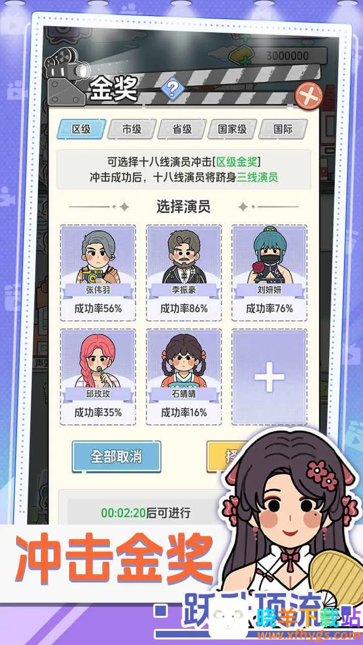 2、演员个性养成系统,每位演员有独特性格天赋,通过多维度培训提升能力,还得维护好感度。