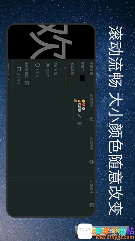 弹幕应援灯牌2025官方最新版本特色十足。它支持全屏滚动字幕与跑马灯效,输入文字就能滚动显示,文字大小、字体、颜色、背景、滚动方向和速度皆可调,能展现个性。适合多种情境,一部手机搞定灯牌。模板与特效丰富,内置多款跑马灯闪烁特效和背景图片,无需设计基础。还能多屏同步或离线使用,操作简单,新手快速上手,让现场应援无压力。