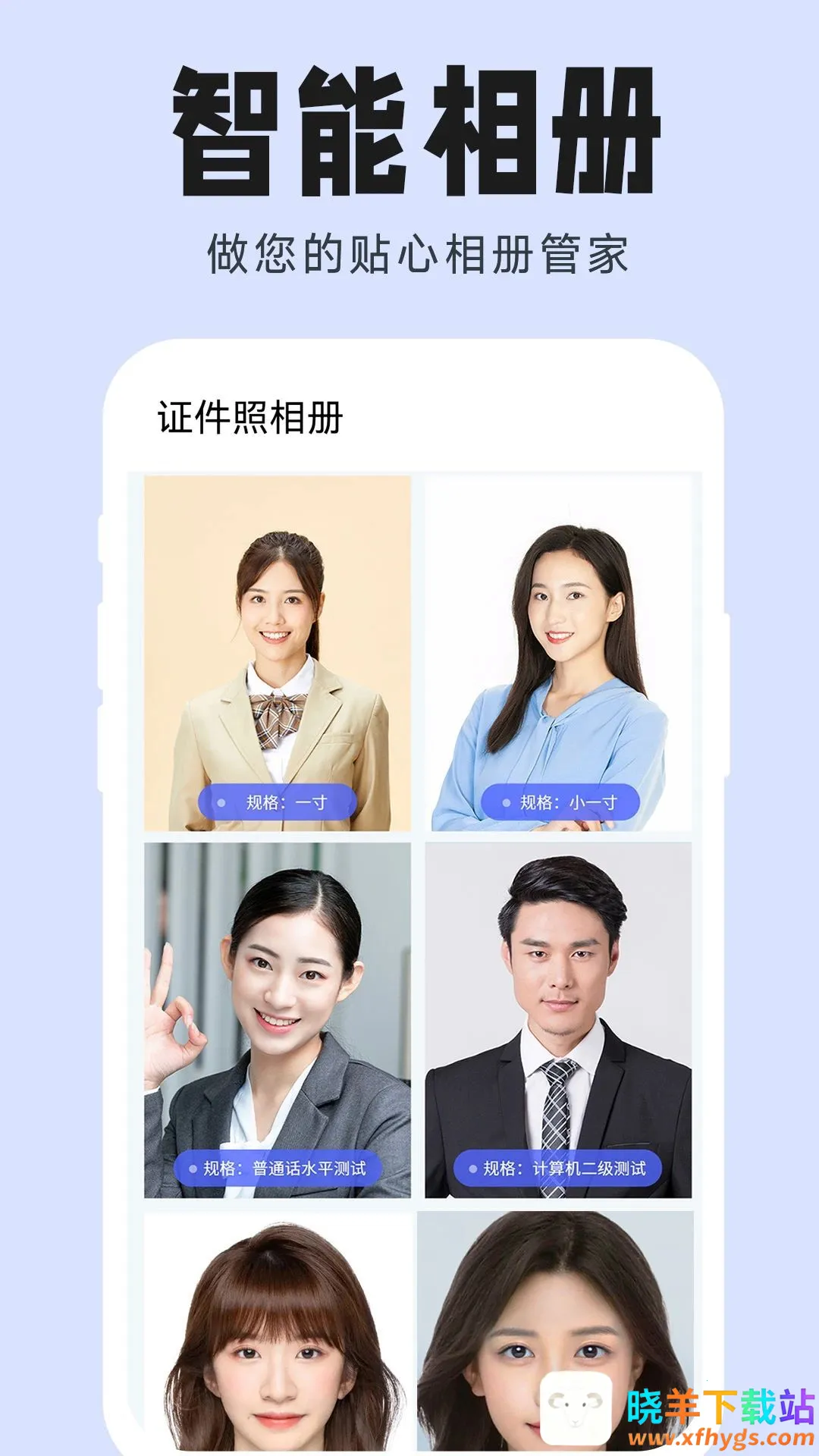 3. 操作简便:打开APP选择照片尺寸,按引导拍摄,照片自动保存到智能相册,操作简单轻松,无需跑照相馆。