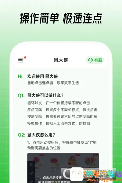 使用方法也不难。在电脑版上,设置脚本的循环次数、间隔时间等参数,就能让它按要求循环点击。手机版操作更直观,点击启动按钮,把标记移到要点击的位置,按需增加点击位置,再点击运行就开始连点了。而且它能后台运行,不影响其他程序,兼容性也强,各种系统和电脑配置都适用。如果你正为频繁点击发愁,不妨试试鼠大侠。