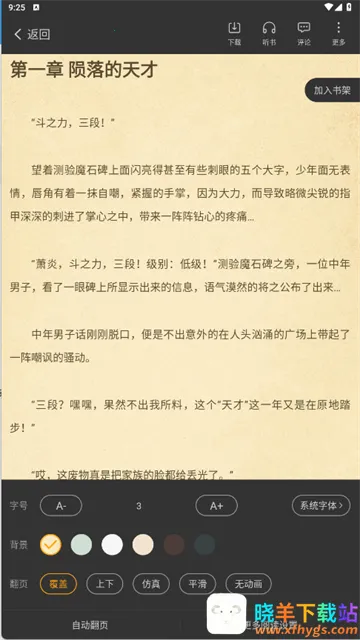 3、便捷功能设计:提供夜间模式、自动翻页等人性化功能,适配不同场景阅读习惯。支持小说离线缓存,无网络时也能阅读,书架功能方便收藏管理书籍,同步阅读进度。
