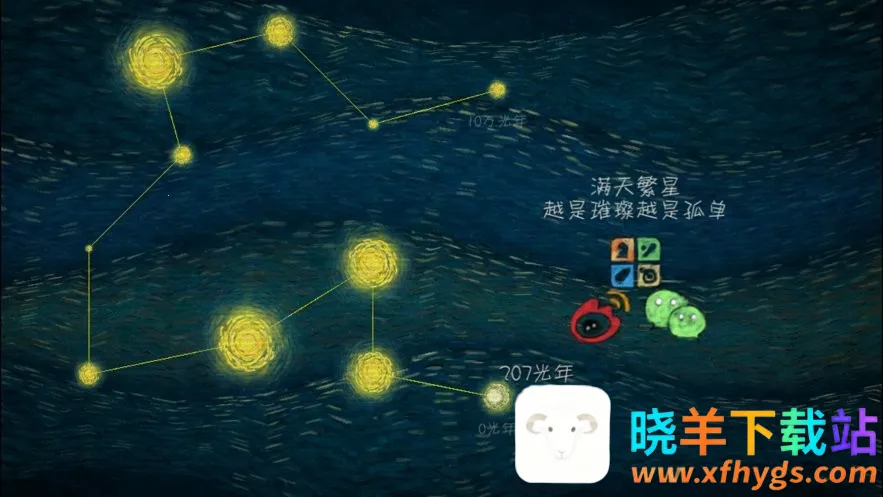 休闲类游戏则让你扮演光球或流星,在星空点击飞行,从一颗星星飞向另一颗星星,吸收能量、增加飞行距离,感受宁静与忧伤交织的独特氛围。