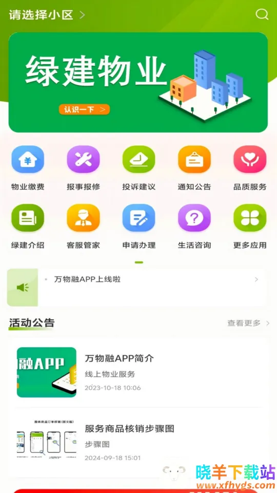 万物融是一款全能生活服务平台。可清晰便捷地进行物业缴费,报事报修简单快速,投诉建议渠道畅通。及时推送通知公告,还有多元生活资讯。周边服务全,线上商城商品丰富,点按 APP 享上门服务,还常有优惠。