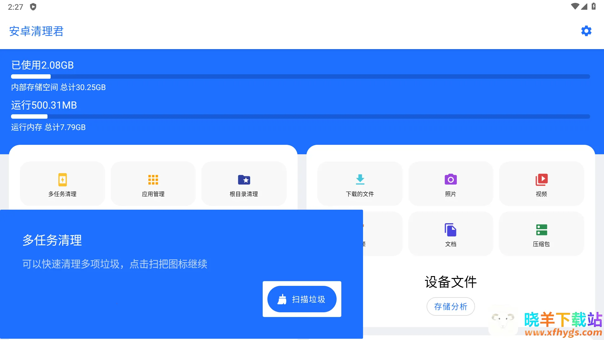 清理君2025官方正版是一款实用的手机清理软件,能清理垃圾、缓存、残留等,自动扫描找垃圾,一键释放内存。还有手机加速、病毒查杀、CPU降温功能,可优化内存、管理软件,保护手机安全并延长使用寿命。