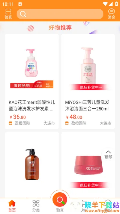 盈橙是支持防伪溯源的购物平台,打造口碑商城。扫码可查溯源信息,保障权益。有美妆等多品类商品,还有优惠。功能丰富,如扫码验真、好物推荐等,汇聚海量大牌,提供品质服务,购物省心方便。