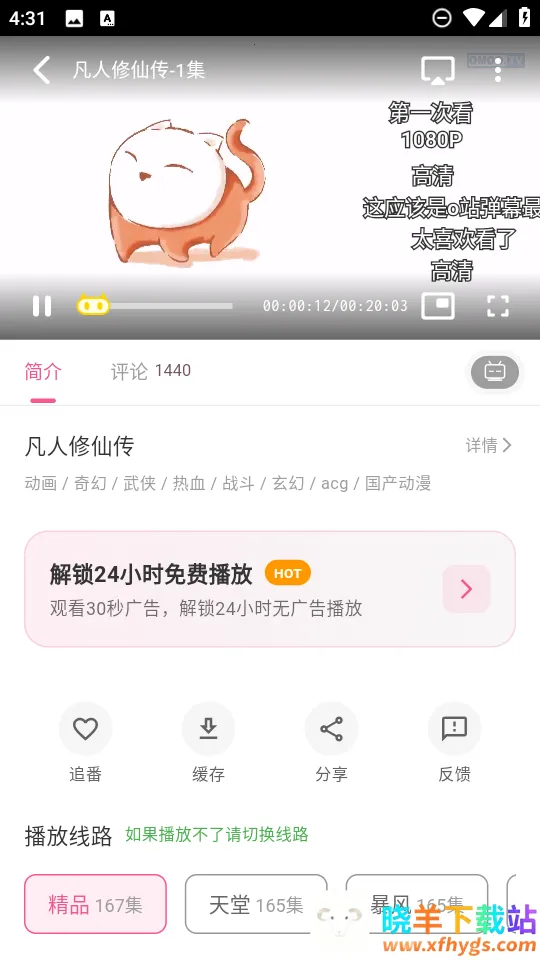 OmoFun复活安卓版是动漫追番神器,有海量免费动漫资源,涵盖多种类型,与主流平台同步更新。无广告弹窗,有社区和推荐功能,支持投屏,还能调画质、发弹幕、缓存动漫,满足动漫迷多样需求。