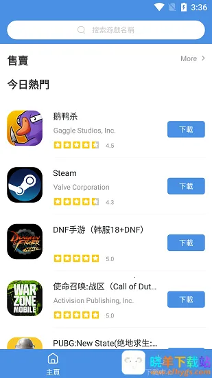 1、首先玩家可以进入应用的主页中通过顶部搜索框或者直接在页面中手动查找到自己想要安装的游戏,例如pubg国际服。