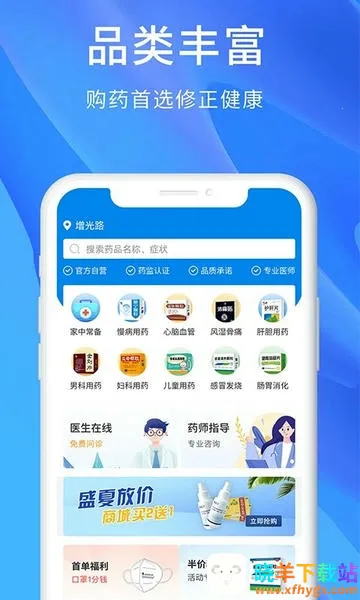 修正健康是修正集团旗下的在线药品购物软件,药品经药监认证,种类齐全。提供闪电配送、专业服务等。有隐私保护、药品保障。支持一键下单,还有医生在线指导,方便用户买药并获健康解决方案