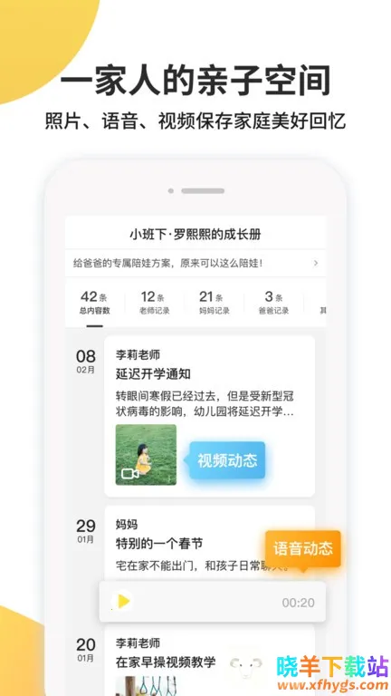 这款软件可以让教师与家长一同参与孩子的教育学习。通过它,能及时了解孩子在园在家的情况,实现教育同步与有效沟通,还能提供针对性教育方案,促进孩子成长。它根据3 - 6岁孩子发展特点,提供专业家庭陪伴计划,每周一个活动,涵盖人际交往、情绪管理、习惯养成等方面,全方位关注宝贝成长。而且信息安全可靠,无外部链接广告,私密性强,操作简单,初次使用也能快速上手。还能免费无限存储宝宝的照片、视频、语音,一键生成独一无二的成长册,值得家庭一生珍藏翻阅。有了它,就能轻松陪伴孩子长大,留下珍贵回忆啦。