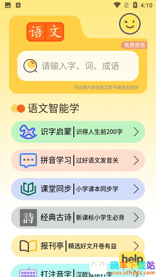 爱拼音最新手机版特色丰富。它专为学龄前儿童、小学新生及零基础外国人打造,能大幅降低汉语学习难度。**有专业发音课程**,语文老师真人发音,系统指导拼音学习,还有独家拼读练习巩固知识。紧密结合教材,规范书写笔顺描红。权威辞典正版授权,解释严谨可靠。包含学龄前常用200字,精美配图助识字认字。新课标必背75首古诗带拼音,可从小启蒙。能让孩子在语文学习上轻松起步,赢在起跑线,无论是拼音学习、识字写字还是查字典词典等都不在话下。
