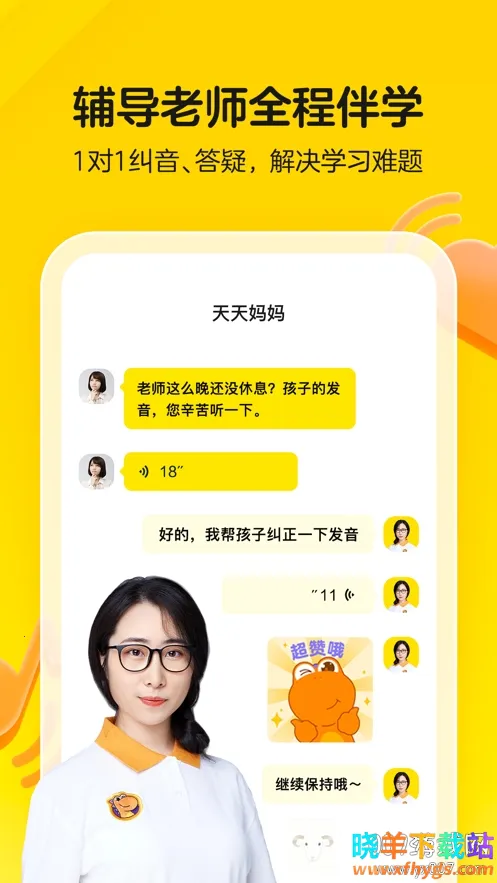 2. 辅导老师贴心伴学,即时纠音在线答疑:专业老师全程陪伴,一对一纠正发音、及时解答疑问,解决孩子学习难题。
