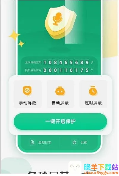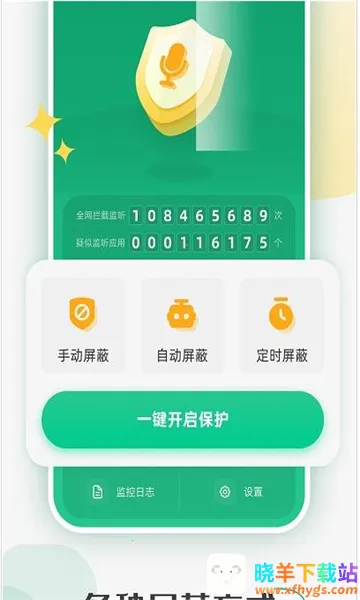 2. 智能拦截,多种模式随心切换。内置强大数据库匹配机制,能智能拦截监听动作,提供手动、自动和定时模式,可根据需求自由切换,实现个性化防护。