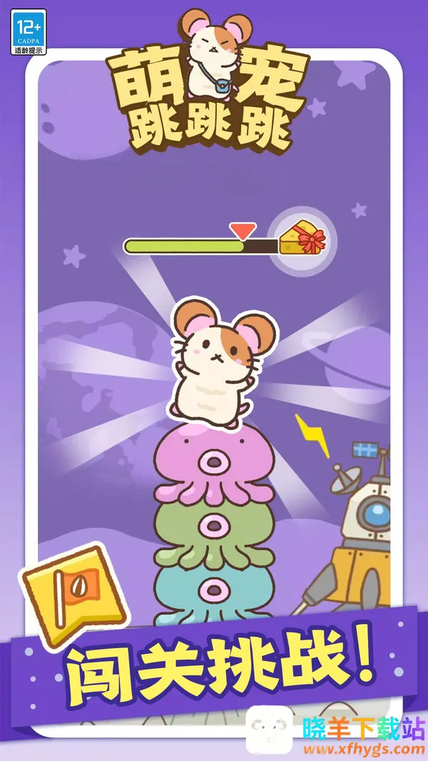 萌宠跳跳跳是一款可爱的休闲游戏,主角是萌萌的小仓鼠。玩家通过控制小仓鼠跳跃抓取奶酪,玩法简单却富有挑战。