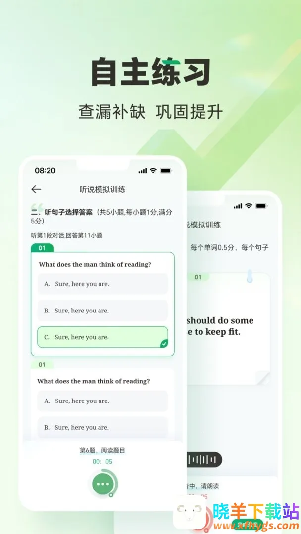 1. 仿真中考听说流程:同步讲解,实时评测,智能评分,让学生熟悉考试形式。