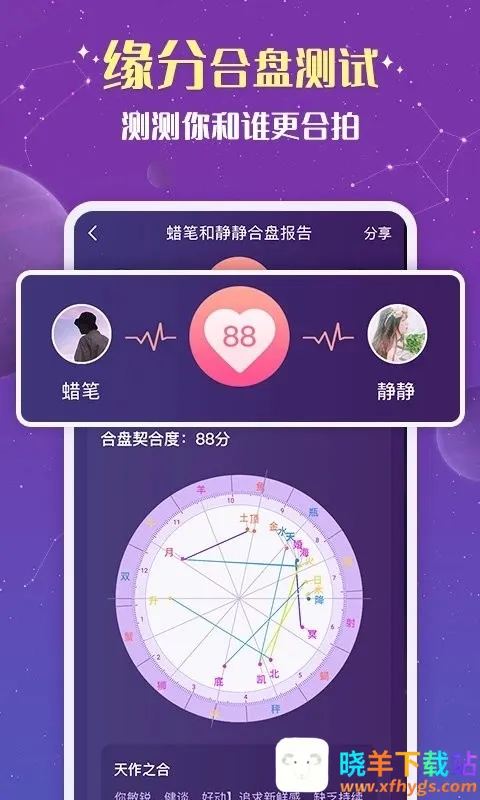 1. 专业解读:能为用户提供最专业的星盘解读,帮助了解真实的自己,还可进行缘分合盘测试,知晓与自己最合拍的人。
