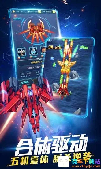 2、卡牌式战机养成:战机是游戏主角,区别于同类游戏简单的解锁或一键升级,此游戏拥有卡牌式强化养成系统。玩家在关卡收集道具,在战机面板强化升级装备,提升战机性能,能打造独一无二的超强战机。
