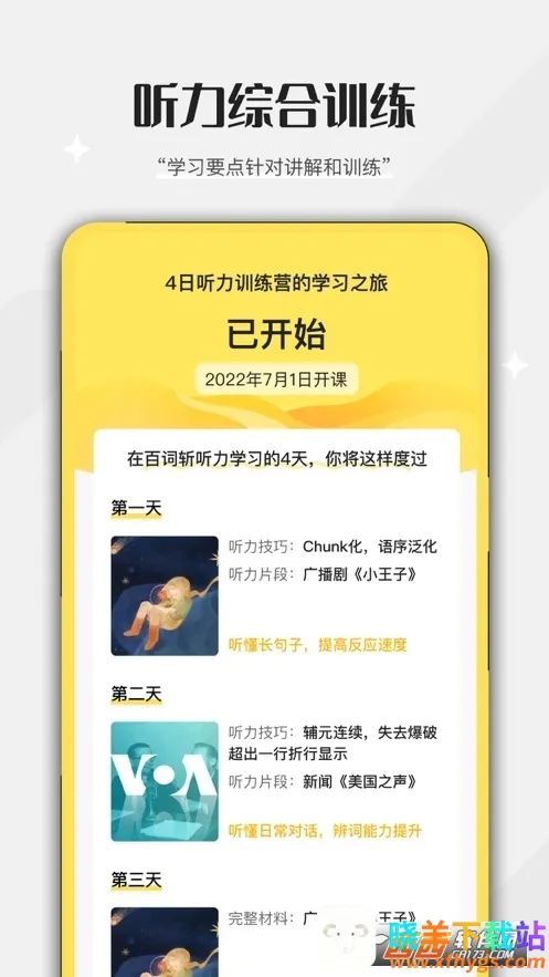 1. 品牌计划定制:由百词斩出品,能为用户制定合适的个性化英语听力提升学习计划。