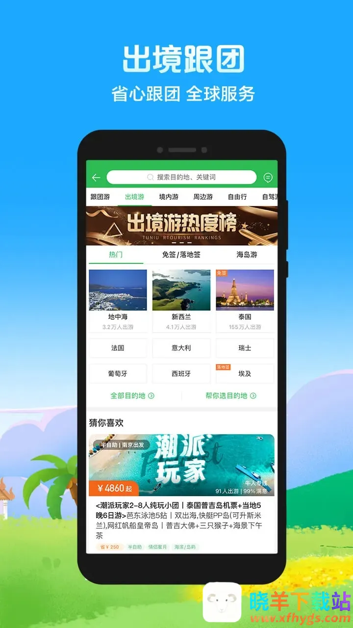 途牛旅游安卓版是南京途牛科技打造的旅游服务软件。覆盖全球多地,提供丰富线路预订,涵盖机票、酒店、门票等。有特卖、跟团、自由行等多种模式,新客专享礼包,功能不断升级,出行超便捷。