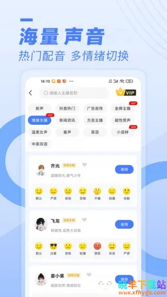 1. 丰富多样的主播选择:近300位AI合成配音主播发音人任你挑选,满足不同需求。