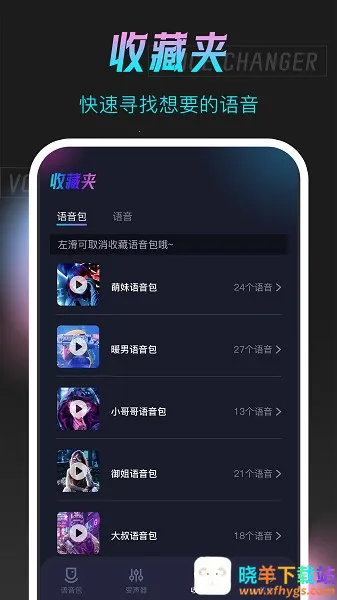手游语音变声器是一款超有趣的手机变声调音工具。它能让你轻松切换各种声音角色,还有超多搞笑语音包。操作简单,录完音一键变声。图文教程新手秒上手,海量语音包定期更新。专业声优入驻,教你玩转声音,还能随时保存分享,和朋友欢乐开黑。它适配各种社交场景,热门游戏语音全覆盖,完美适配微信、QQ、抖音等平台。专门为游戏开黑设计的语音包,能让你在游戏中更出彩。而且下载后可不限时录音,结合多样变声效果,满足你多样化变声需求。如果你想让语音更有趣,不妨试试这款手游语音变声器。