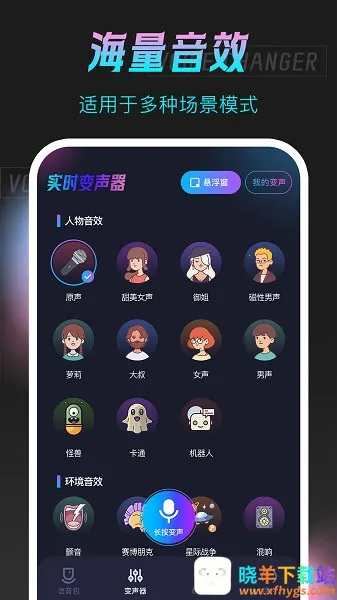 2、实时变声超便捷:语音聊天或录制音频时,能直接将声音转换成不同效果,即时听到变声后的声音。