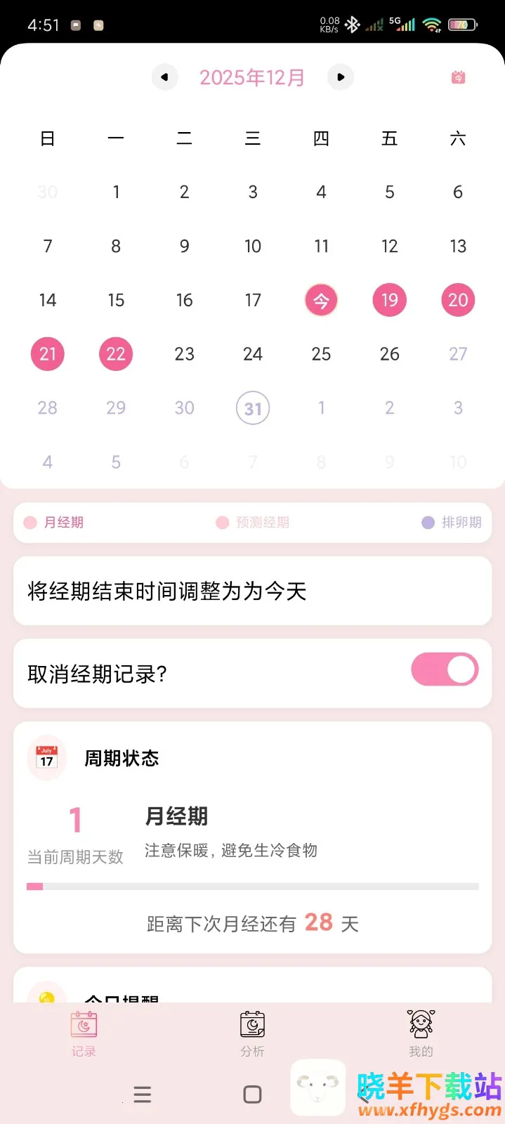 想知道花期最长的花排名?其实有款超实用的软件能帮到你!花期app专为女生打造,是生理期记录神器。它能精准记住每月经期时间,预测下次来姨妈日期、安全期和排卵期。流量变化、疼痛程度、情绪起伏等细节都能记录,通过图表一目了然。使用方法简单,首次用手机号注册登录,进入首页点击记录经期入口,选月经开始日期,设置经期天数和周期长度,保存即可,系统自动生成预测数据。常见问题也有贴心解决办法,忘记日期可大概补记,周期不规律也能用。它不仅记录经期,还能记体重、体温等基础健康数据,界面清爽,记录步骤简单,数据能导出,适合长期观察身体变化、认真了解自身健康的女生,让你轻松管理生理期,不再为经期问题烦恼。