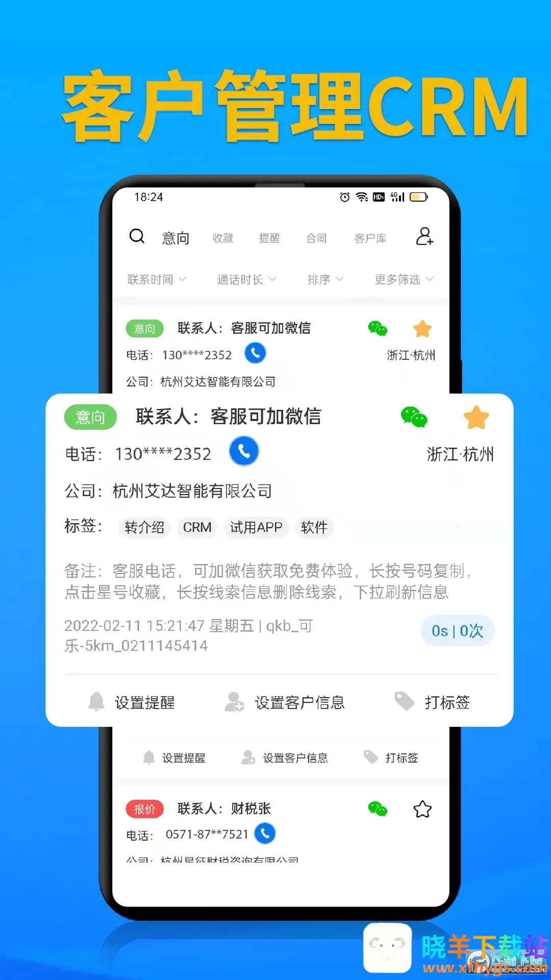 4. CRM能力出色:拥有移动CRM,支持标签自定义、收藏跟单提醒报表,能助力电销人员轻松管理跟进客户线索,实现差异化客户跟进策略。