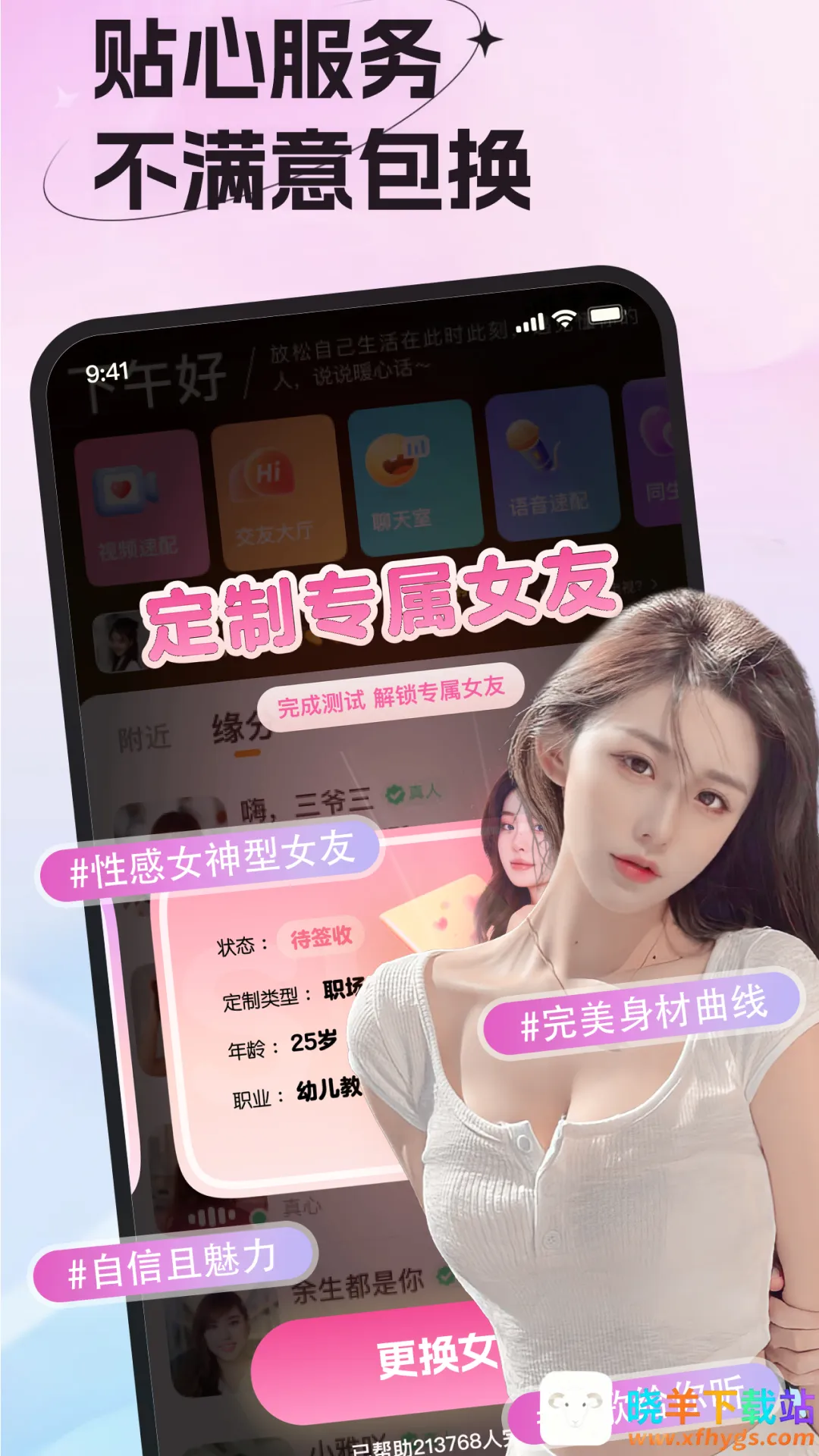 女友请签收这款交友软件专为单身用户打造,能让你告别孤单的两点一线生活,拥有更多交友空间。它有来自五湖四海的用户,注册时经过双重认证,保证真实交友。先进的推荐算法会根据你的喜好和需求智能匹配合适异性,增加彼此话题。软件提供语音交友功能,支持文字、图像和视频交流,还推出短视频匹配模式。视频聊天可让用户面对面交流,更直观认识对方;匹配推荐能帮找到潜在配对对象;社交互动功能丰富,可发布动态、评论、点赞等。不过,有用户评价不太好,有人觉得像机器人,聊天还收费,修成正果的几率小。所以,对于想通过它找女友的人来说,要谨慎对待,仔细辨别。