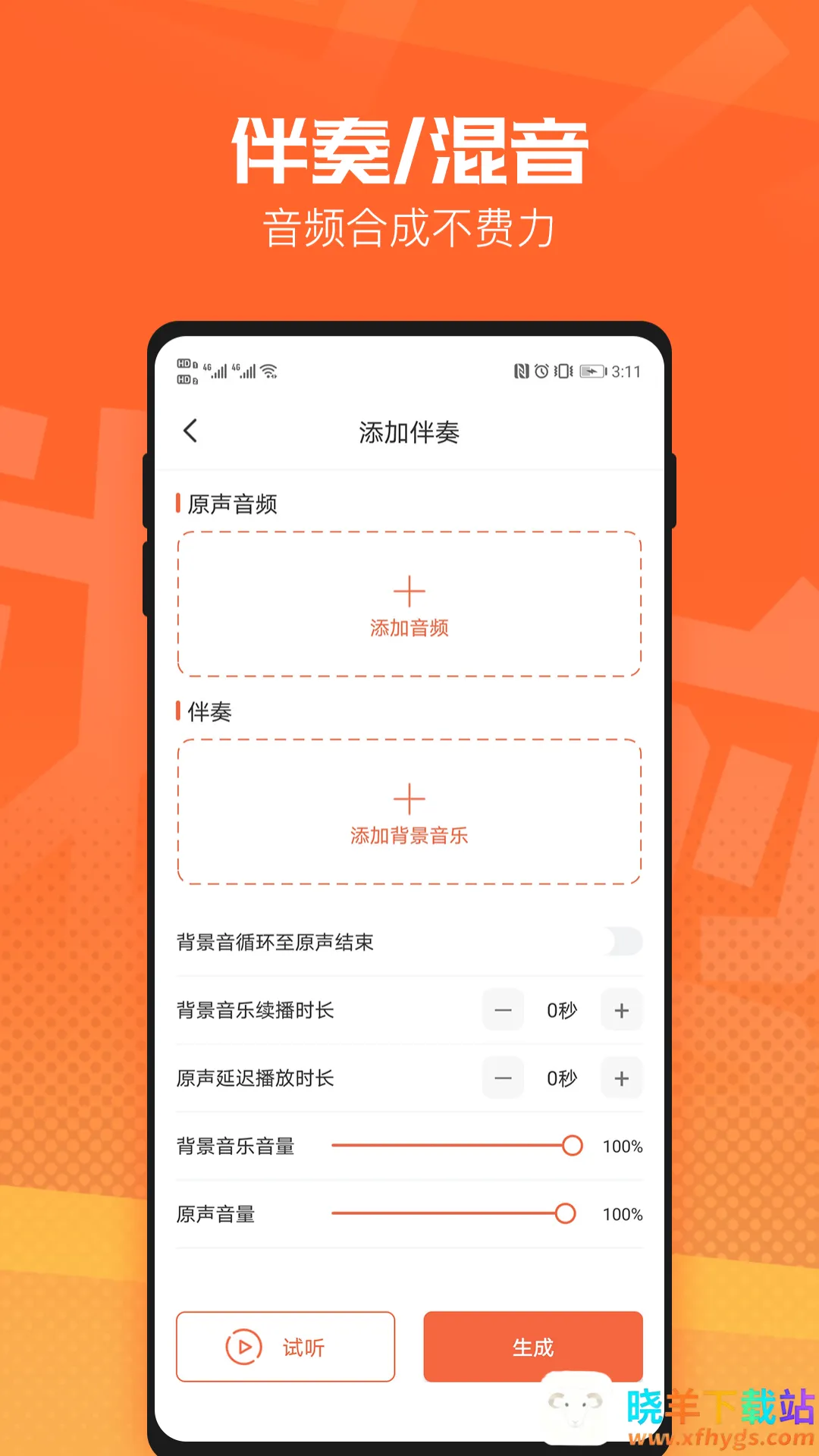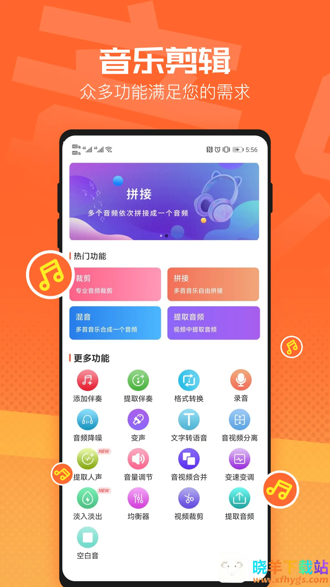 支持多种音频操作:可对音频文件进行裁剪、合并、混音、调整音量等操作,还能制作铃声、提示音、闹钟歌曲等多种类型的音频文件,让您自由定制音频内容。