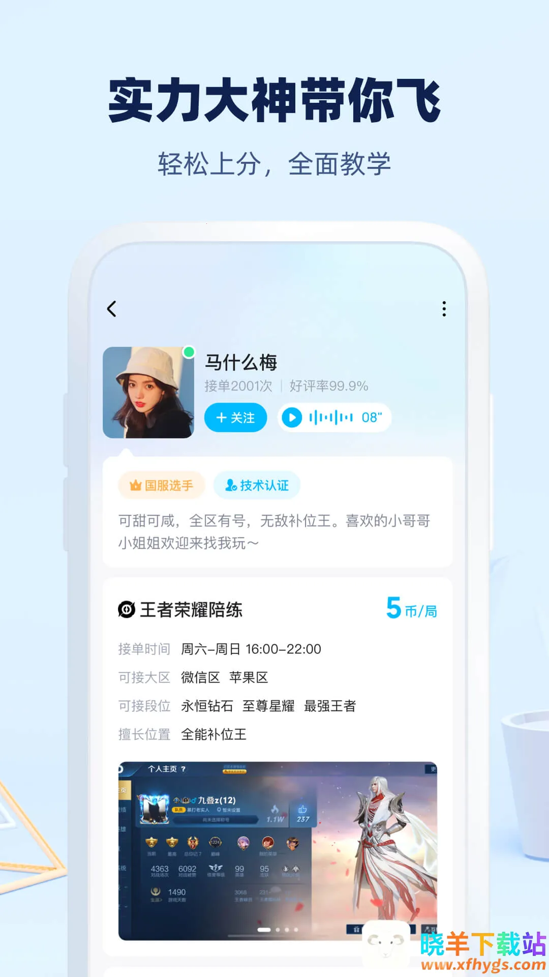 想在王者里轻松上分,找大神带飞?“王者大神陪练”类软件就能满足你!这类软件里汇聚了超多王者大神,能陪你一起开黑。不管啥时候,只要你想玩,随时能约到大神在线1v1连麦,畅享游戏欢乐。大神们专业指导,带你快速上分,晋升大神不是梦。