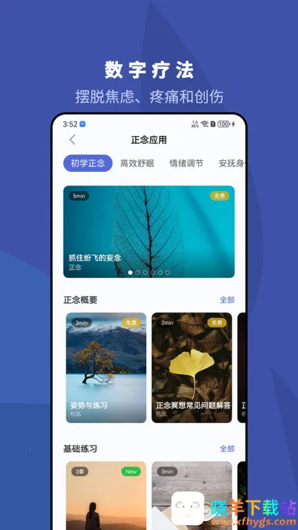2、多场景应用:设计了多种应用场景,如改善睡眠、消除孤独感、缓解焦虑等,让用户在生活各方面轻松实践正念。