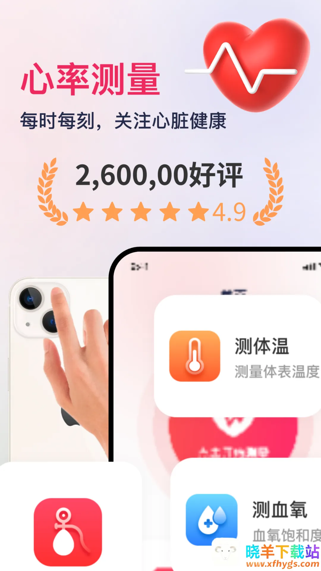 1. 操作简单便捷,无需额外设备,仅用带摄像头和传感器的手机就能完成测量,适合各年龄段人群。
