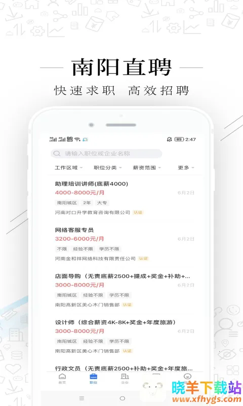 南阳直聘2026官方最新版本,提供海量职位信息,精准匹配求职者与招聘方。功能丰富,涵盖兼职全职,保障安全可靠。严审职位细节,支持在线沟通,还有多样简历模板,助您高效求职。