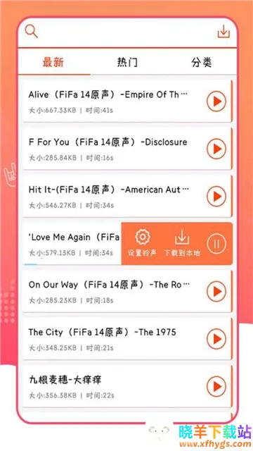 4. 界面简洁纯粹,铃声详细分类,全面资源库涵盖广泛类型,不断播放各种铃声,充分满足不同用户对铃声的多样需求。