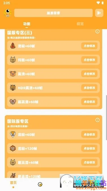 1. 一键解锁各级预设画质,能实现超高清120帧快速版本切换并设置云存档,让玩家游戏更流畅。