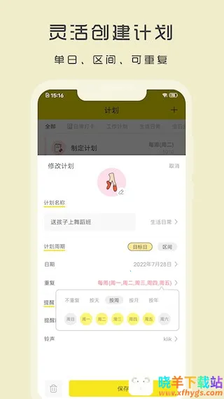 4. 多样化计划模式:支持单次任务及周期性安排,适应各种场景,让时间管理更灵活。