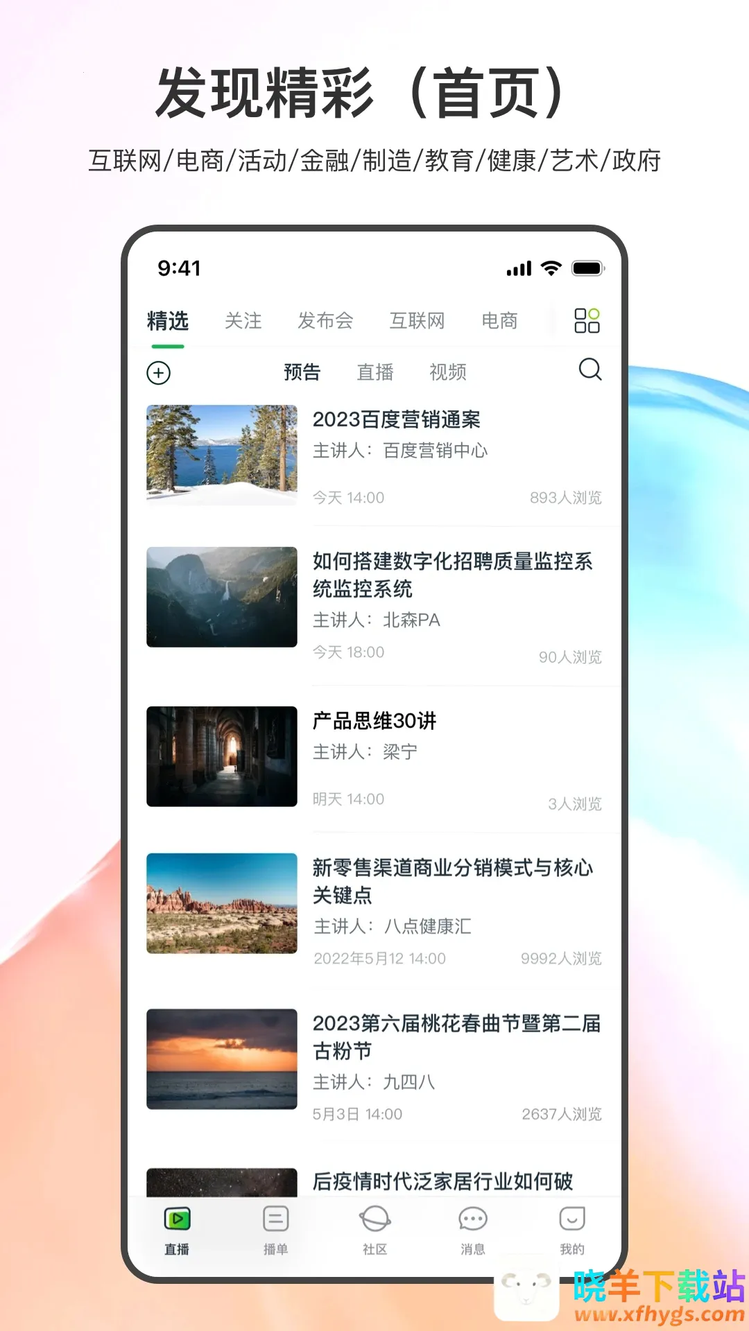 1. 直播发布:可在站内直接发布直播,促进流量渗透,助力企业及产品迅速获客。
