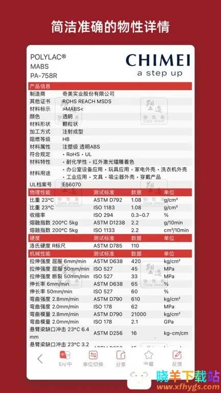 物性表是深圳塑造新材料技术有限公司打造的材料检索与采购软件。能帮用户迅速找原料,掌握性能参数。有强大搜索、多方式匹配等功能,还能缓存查阅、社交分享,汇聚海量数据,助力材料研发与采购决策。