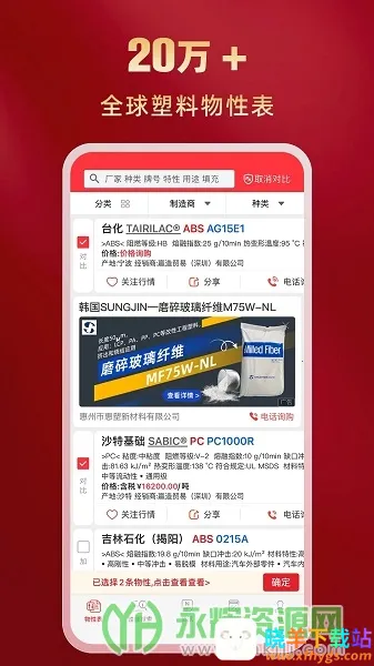 物性表是一款功能强大的材料检索与在线采购软件。它由深圳塑造新材料技术有限公司打造,能帮你迅速找到所需原料,掌握各类物质性能参数与特性。