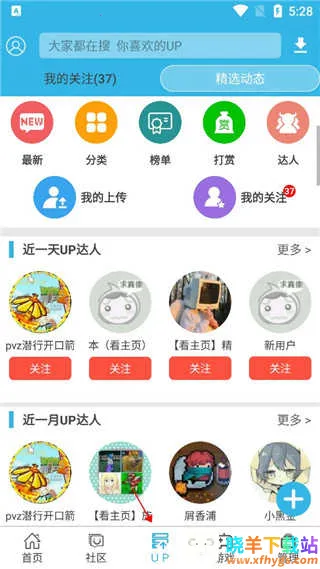 2、在首页下方菜单栏找到UP进入。