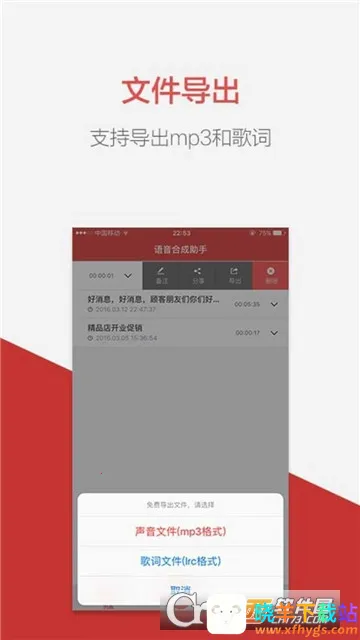 2、导出MP3超方便,生成的MP3文件能拷贝到U盘或者内存卡里面播放,随时想用就用。