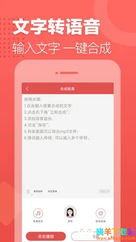 想要轻松制作广告叫卖录音?这款软件超棒!操作简单,中英文随意切换,还有多种发音人可选。有海量背景音乐,能与广告完美搭配。支持同步导出mp3和歌词文件,多平台分享给好友。还能连接蓝牙音箱播放,无需导出文件。适用于商场广告促销、地摊叫卖、企业宣传等各种场景。不管是广告配音、英语读物制作,还是有声阅读等都能轻松胜任。快来下载,让你的宣传更给力!
