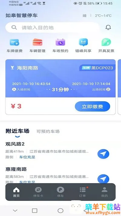 如皋智慧停车软件能帮你轻松搞定停车场攸费价格相关问题。它能精准定位,让你快速找到周边停车场,还能清楚显示每个停车场的空位情况以及收费标准,方便你对比选择最合适的。你可以通过它一键导航到目的地停车场,避免绕路。缴费也超便捷,支持微信、支付宝、app电子钱包等多种支付方式,提前缴费后能无感快速离场。软件还提供发票申领功能。首次使用建议完善资料,绑定车牌号,设置默认支付方式。搜索目的地时可用语音输入。预约车位提前支付定金,按时到达自动抵扣费用。遇到问题摇一摇手机就能唤醒24小时在线客服解答。有了它,停车不再烦恼,出行效率大大提高,轻松解决停车难、停车贵的问题,让你的出行更加顺畅。