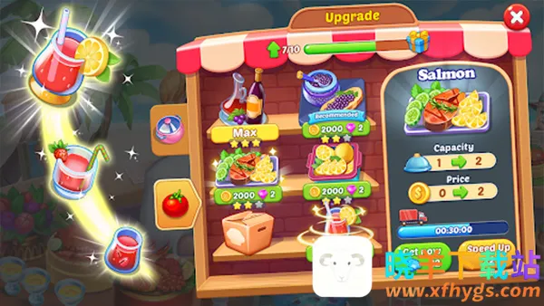 3、全力赚取金币,升级打造顶级餐厅。用赚取的金币升级餐厅及厨房设备,提高制作效率,打造一流的就餐环境,吸引更多食客。