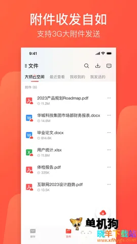 4. 文件管理高效能:文件中心管理功能可快速查找最近附件,大师空间云附件功能支持超大附件无忧发送。